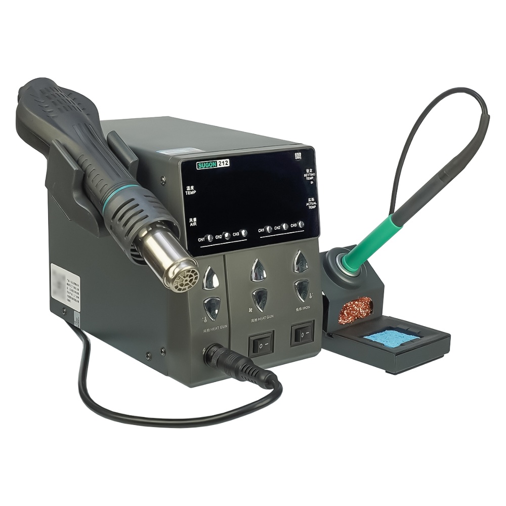 Паяльна станція прецизійна Sugon 212 (паяльник T12, 3 канали пам'яті, 200C - 450C, фен, 3 канали пам'яті, 100C - 500C, 760W)