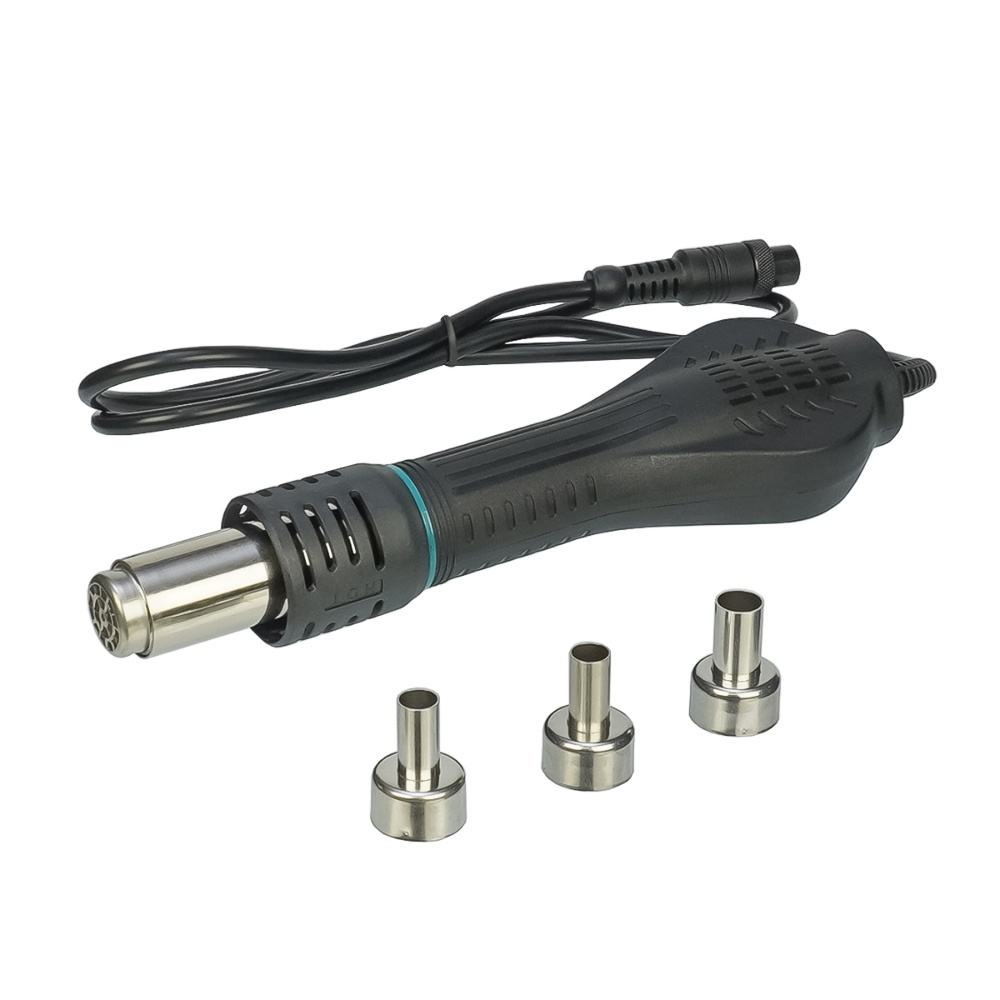 - Функція попереднього встановлення та перемикання між трьома встановленими температурами під час роботи, без необхідності повторного налаштування кожного разу, для паяльника та фена.