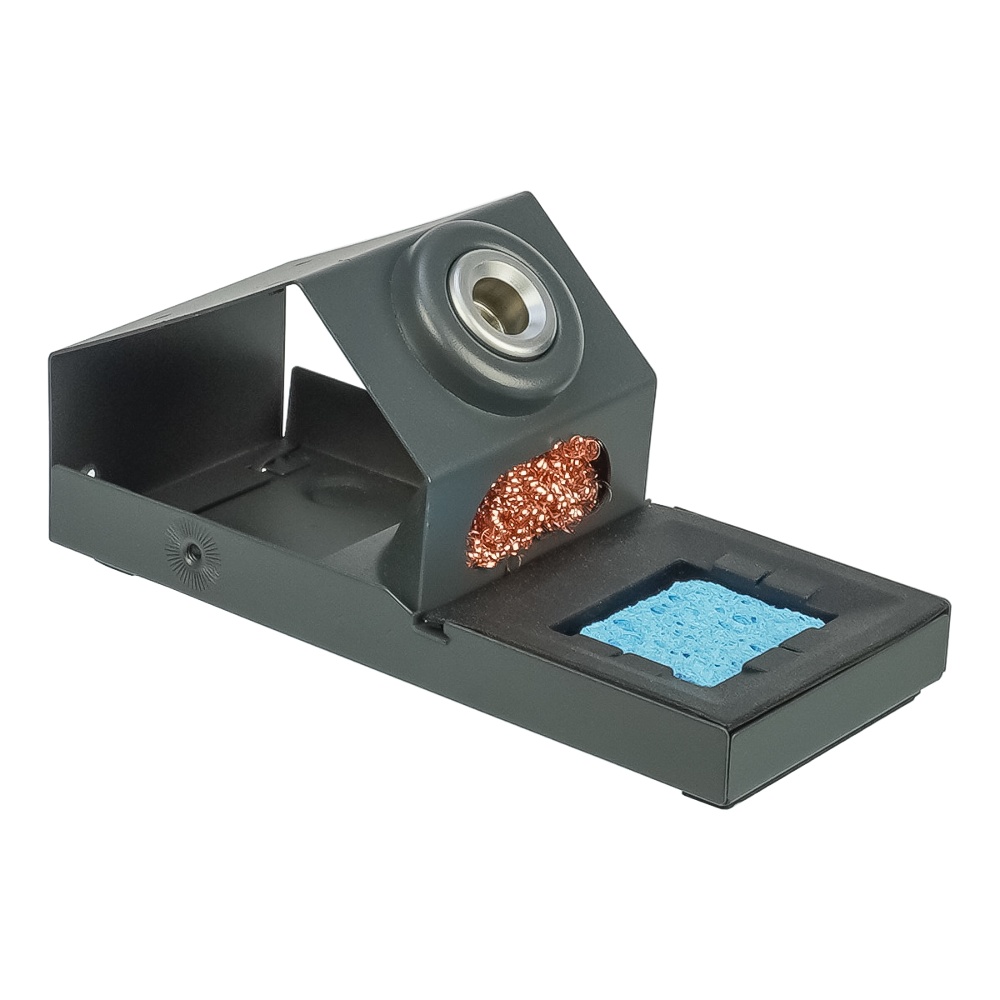 - Паяльна станція укомплектована практичною підставкою для паяльника з губкою для чищення жала.