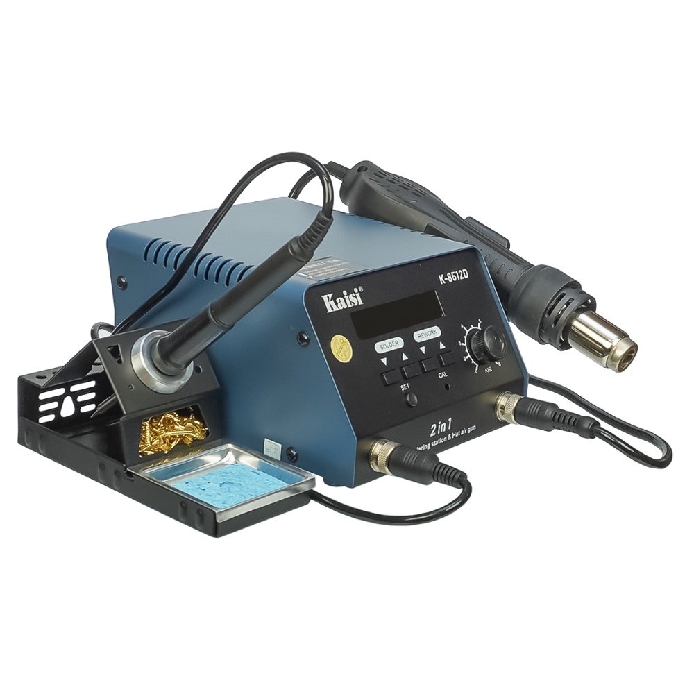 Паяльна станція прецизійна Kaisi K8512D, фен, паяльник T12, цифрова індикація- це два незамінні інструменти в одному: паяльна станція та фен. Призначена для виконання тонких та складних паяльних робіт, таких як паяння мікросхем, електронних SMD-компонентів, дротів та інших дрібних елементів. Паяльні станції це ідеальне обладнання для сервісних центрів та майстерень, лабораторій, дослідницьких та навчальних закладів, а також для любителів та професіоналів, широко застосовуються у виготовленні та ремонті різноманітної електроніки: телефонів та планшетів, комп'ютерів та телевізорів та багато іншого.