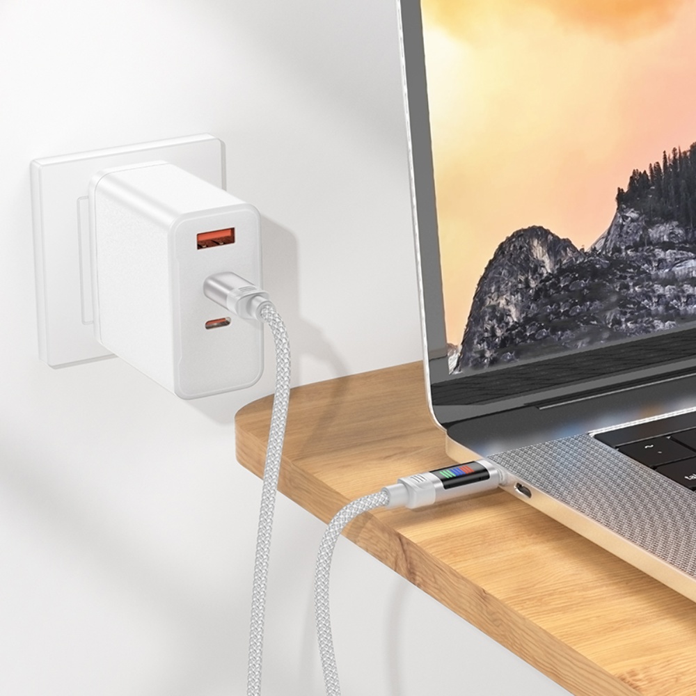 Кабель Hoco U126 сірого кольору з індикатором та роз'ємом Type-C to Type-C — це надійне рішення для швидкого заряджання ваших пристроїв.
