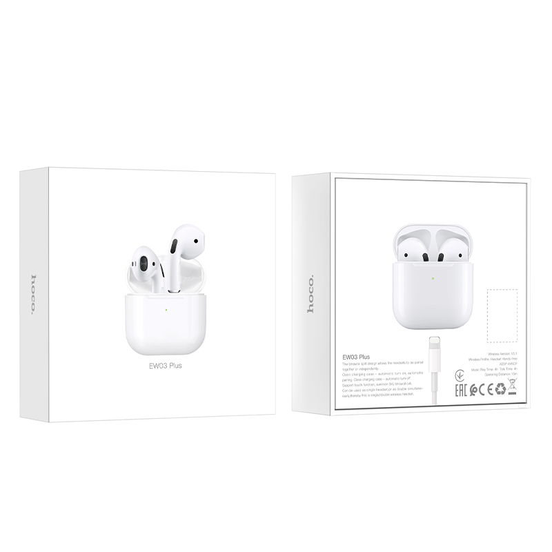 Навушники бездротові вкладки Hoco EW03 Plus TWS у білому кольорі - це компактне та стильне рішення для прослуховування музики та здійснення дзвінків без дротів.