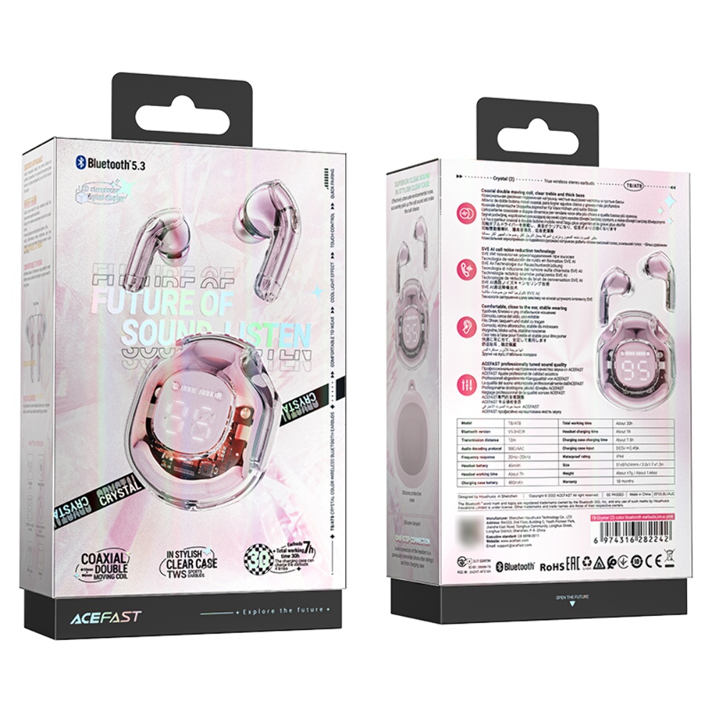 Бездротові TWS навушники Acefast T8 вакуумні рожеві - це сучасне рішення для вашого музичного та комунікативного досвіду без зайвих дротів.