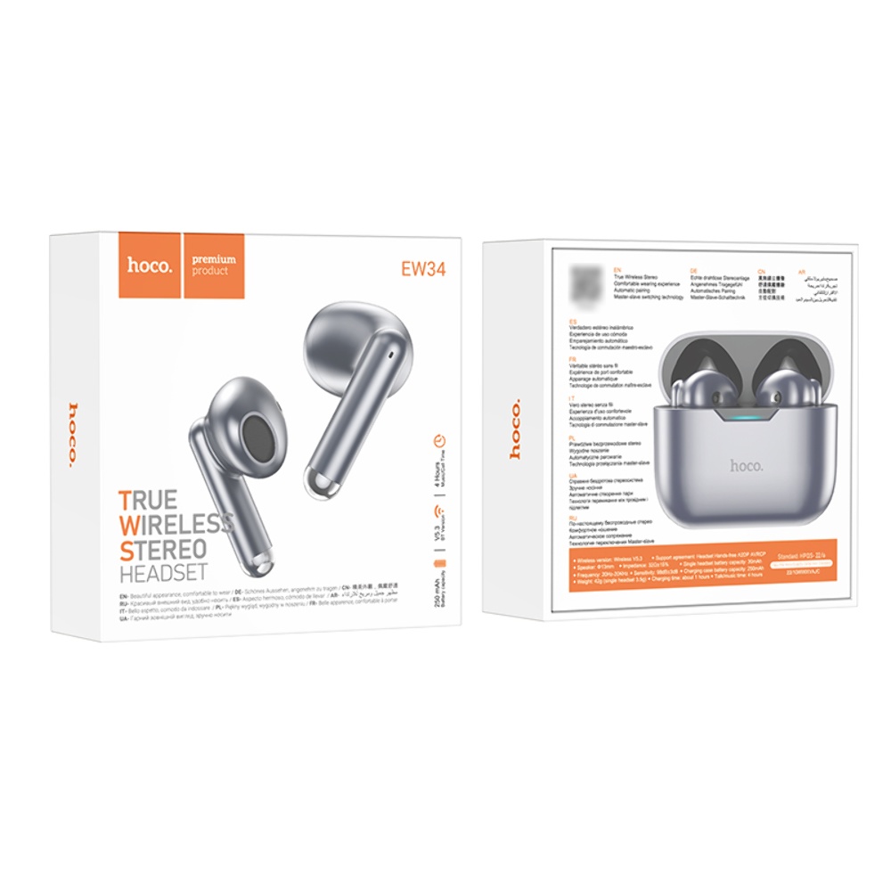 Бездротові TWS навушники Hoco EW34 вкладиші metal gray є зручним і стильним рішенням для прослуховування музики та дзвінків без дротів. Їх компактний дизайн та передові технології роблять їх ідеальним вибором для активного способу життя.