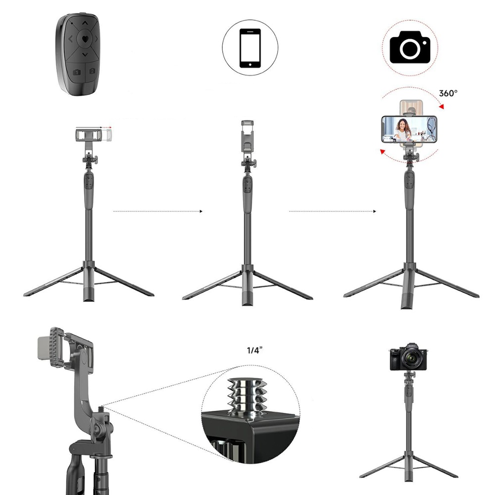 - Портативна палиця для селфі довжиною 1,55 метра із захистом від струсів.