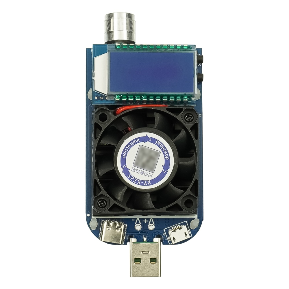 Тестер зарядних пристроїв XY-KZ25 з РК дисплеєм, регульованим навантаженням та активним охолодженням (25W, 4A)