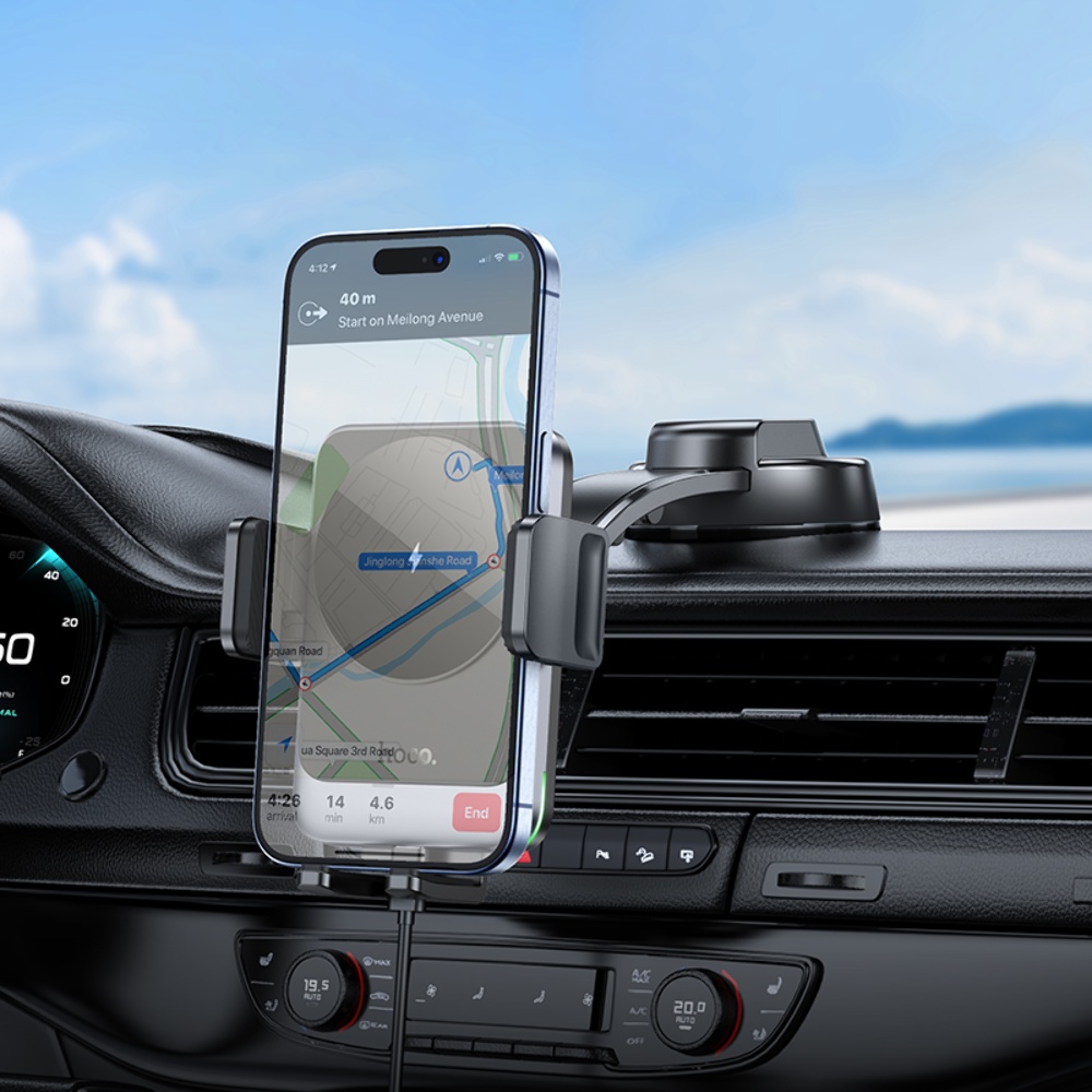 Автотримач Hoco HW14 з функцією бездротової зарядки у кольорі чорний металевий сірий — це зручний пристрій для встановлення та бездротової зарядки мобільного телефону в автомобілі. Забезпечує надійну фіксацію та швидку зарядку вашого пристрою.