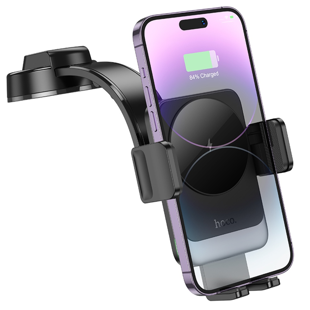 Автотримач Hoco HW14 з бездротовою зарядкою 15W black metal gray