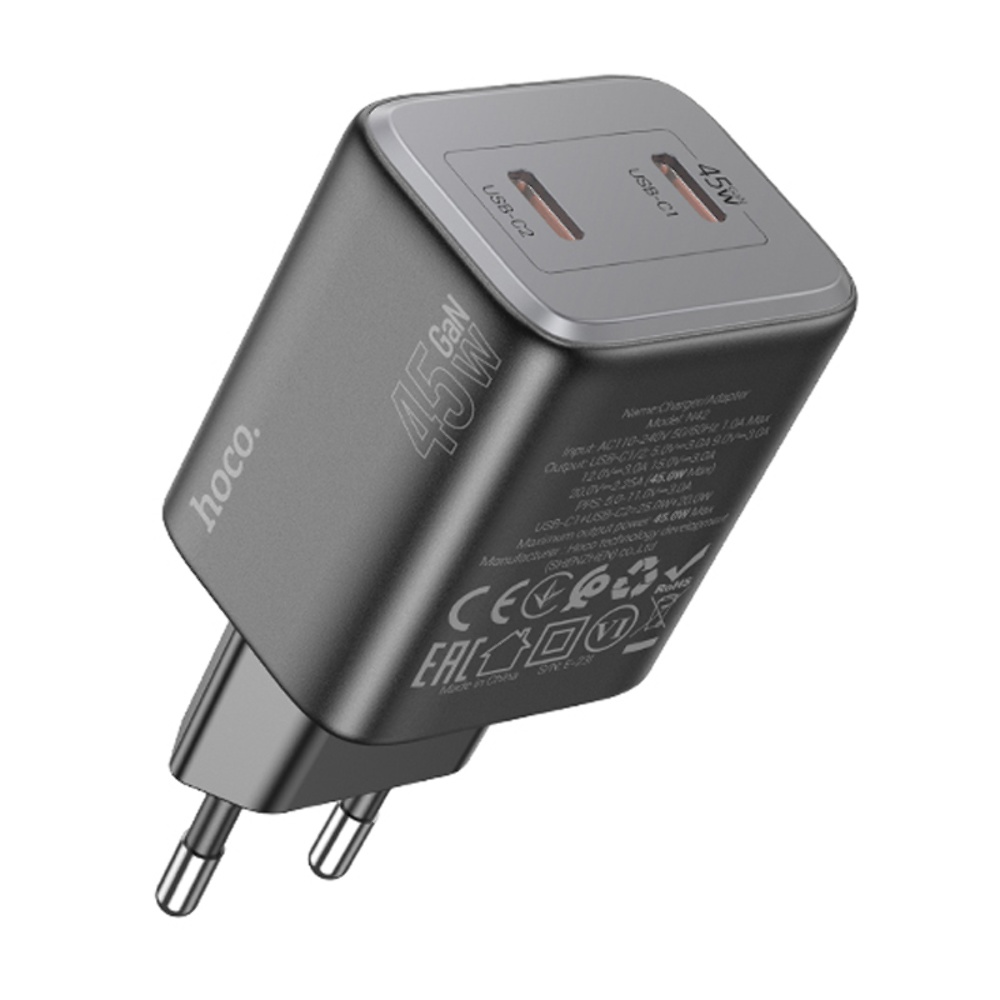 Мережевий зарядний пристрій Hoco N42 2 Type-C PD 45W black