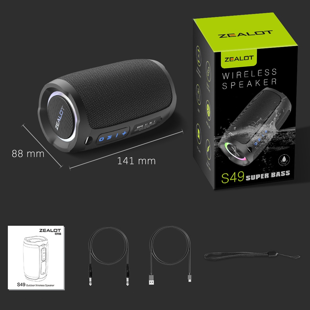 Бездротова колонка ZEALOT S49 в чорному кольорі є стильним і потужним аудіопристроєм з різними можливостями підключення для якісного звучання музики в будь-який час.