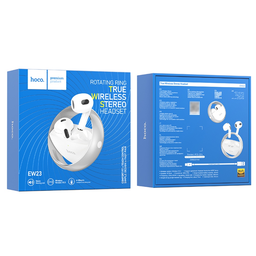 Бездротові навушники TWS Hoco EW23 вкладиші silver — це стильні та функціональні навушники, що забезпечують якісне звучання та зручність використання. Вони оснащені чіпом Bluetooth V5.3 JL AC6983, що гарантує стабільне з'єднання та відмінну якість звуку. З ємністю батареї 250mAh для зарядного кейсу і 30mAh для кожного навушника, вони готові забезпечити вам до 4 годин безперервного відтворення.