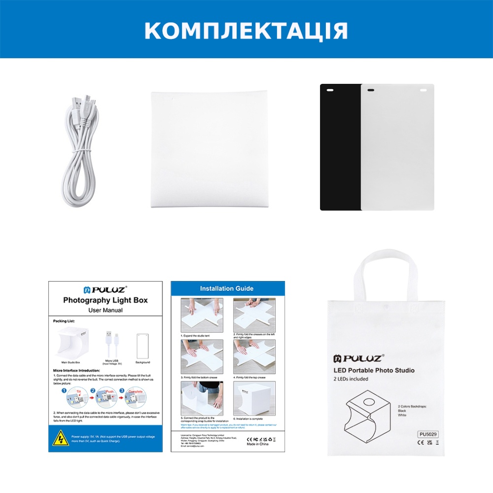 Лайткуб (фотобокс) Puluz PU5029 LED (20 х 20 х 20 см) чорний