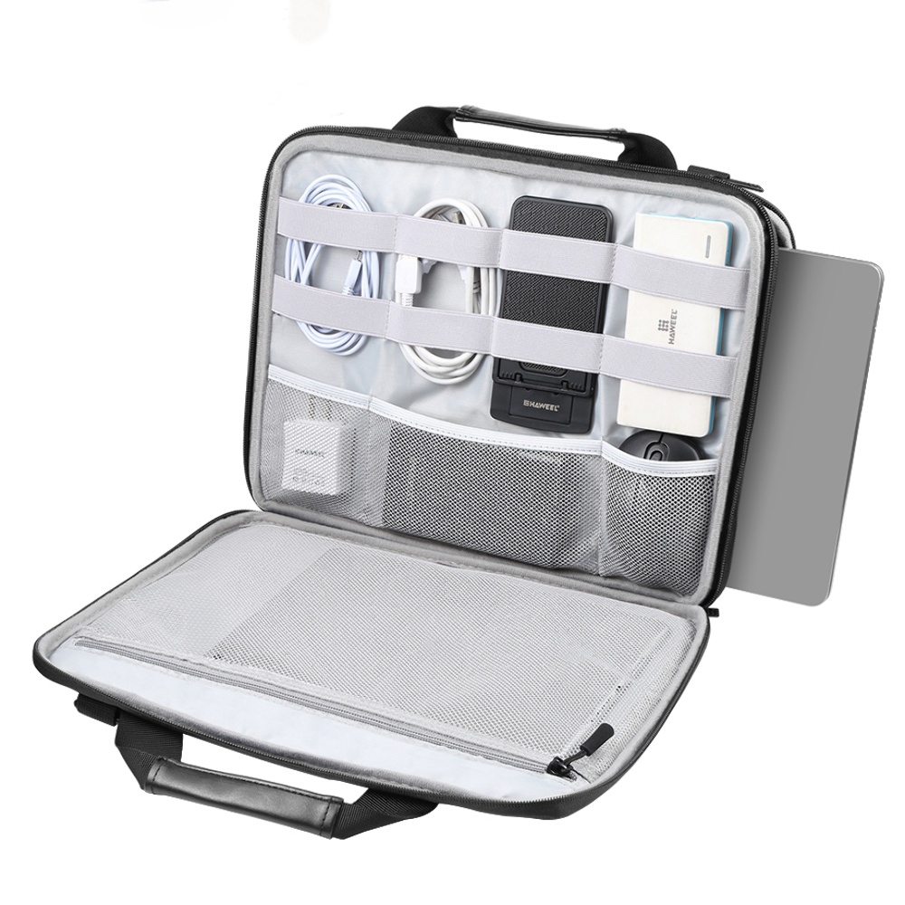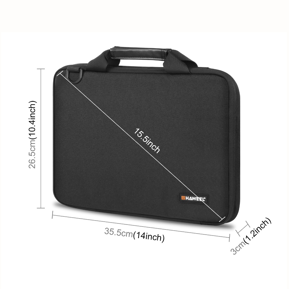 Сумка для ноутбука HAWEEL HWL2168 14-15"" чорна - це стильне та функціональне рішення для захисту вашого пристрою. Зовнішній матеріал із водонепроникної поліестерової тканини та м'яка внутрішня підкладка з оксамиту забезпечують надійний захист від пошкоджень та вологи. Легкий та ультратонкий дизайн робить цю сумку ідеальною для щоденного використання, а безліч відділень дозволяє організовано зберігати ноутбук, аксесуари та особисті речі.