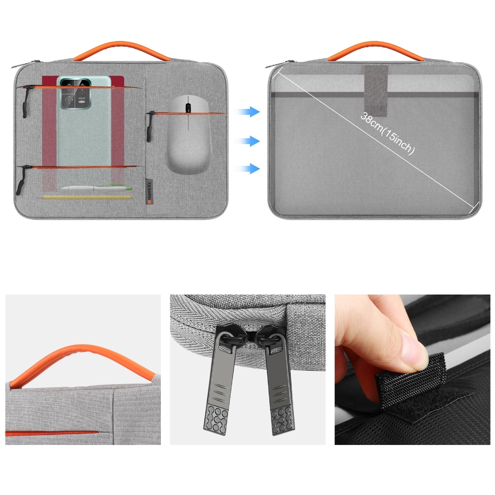 Сумка для ноутбука HAWEEL HWL2164 13-13.5"" сіра — це стильне та надійне рішення для захисту вашого пристрою. Виготовлена з водонепроникної поліестерової тканини зовні та м'якого оксамиту всередині, вона забезпечує багаторівневий захист від пилу, води, подряпин та ударів. Компактний та легкий дизайн робить цю сумку ідеальним вибором для повсякденного використання та подорожей. Міцна ручка з PU матеріалу додає зручності при перенесенні, а плавна блискавка дозволяє легко та швидко отримати доступ до вашого ноутбука.