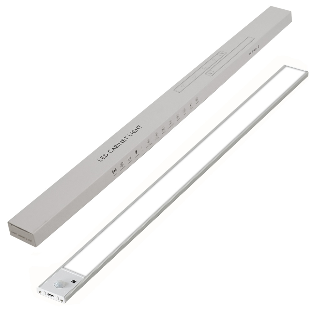 LED світильник 60-3S з пультом, акумулятором, датчиком руху та освітленості 60 см 3.5W алюмінієвий сріблястий