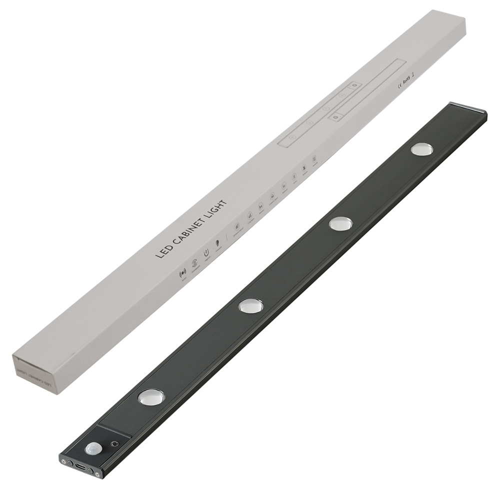 LED світильник cat's eye 60-2B з пультом, акумулятором, датчиком руху та освітленості 60 см 2W алюмінієвий чорний