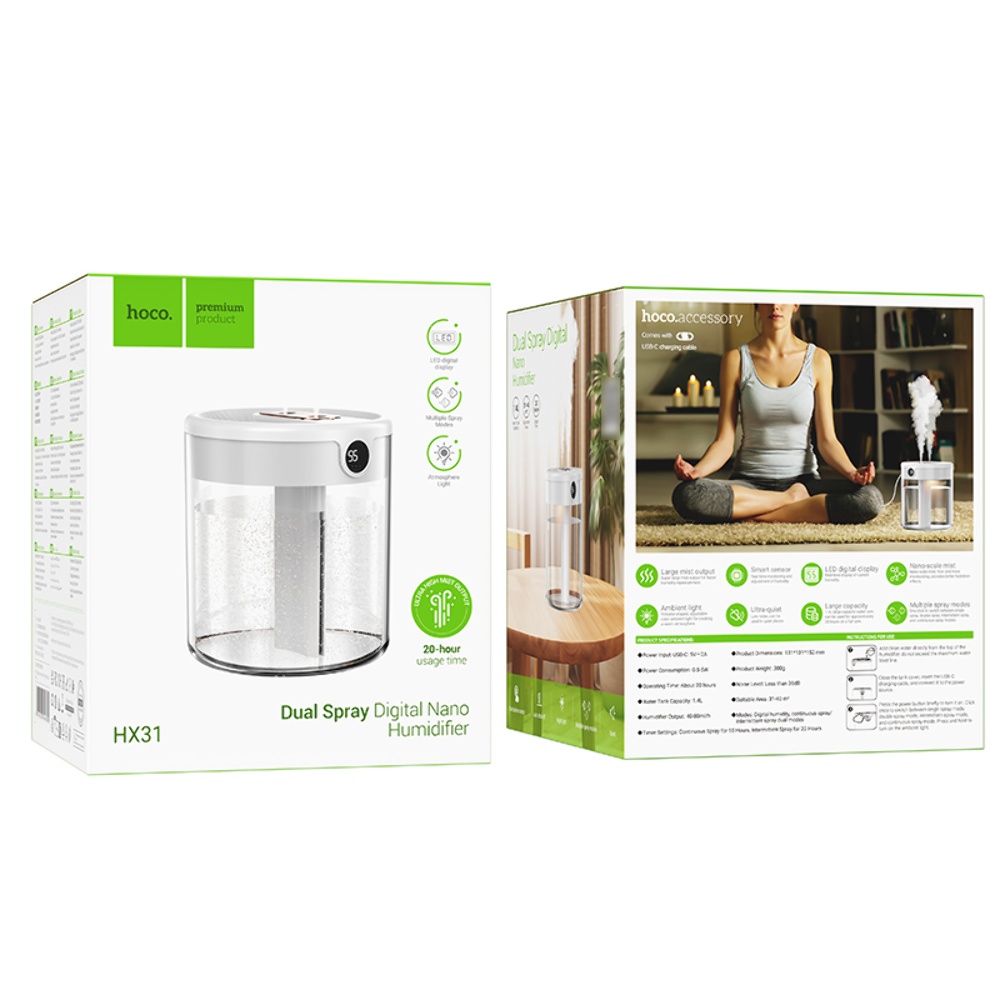 Увлажнитель воздуха Hoco HX31 с двойным распылением и цифровым дисплеем white