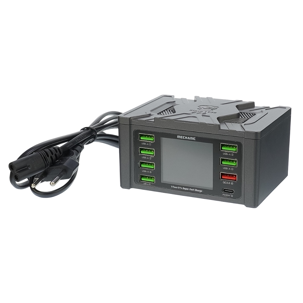 Зарядная станция с индикацией параметров зарядки Mechanic V- Power 8 Pro 110W (6 USB 2.4А/ 1 USB QC 3A/ 1 Type C - PD 20W/ Wireless fast charging 15W)