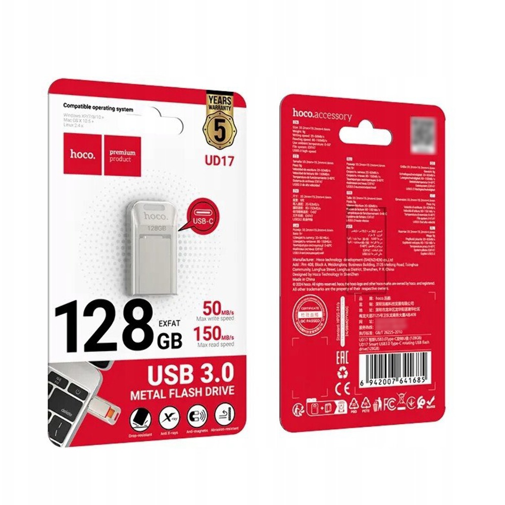 USB флеш накопичувач Hoco UD17 128GB Type-C металевий silver