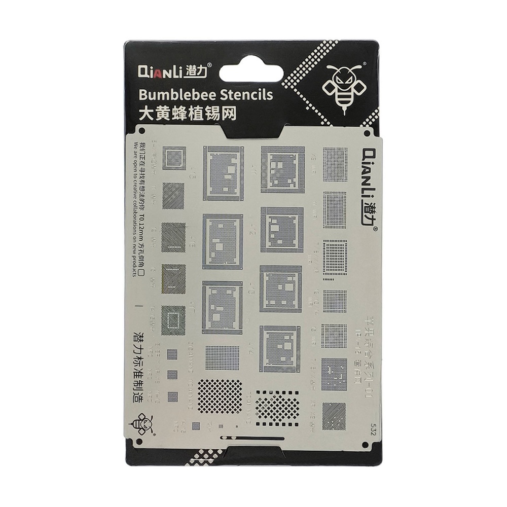 Трафарет BGA QianLi QS532 iPhone Universal 01, IP X-15 (WiFi, Baseband, Nand, NFC, A11-A17)