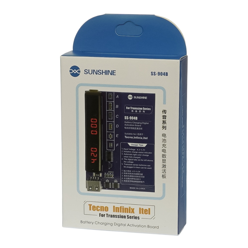 Плата активации и зарядки аккумуляторов Sunshine SS-904B с цифровой индикацией (Tecno/ Itel/ Infinix; кабели Type-C/ USB A/ штеккеры БП)
