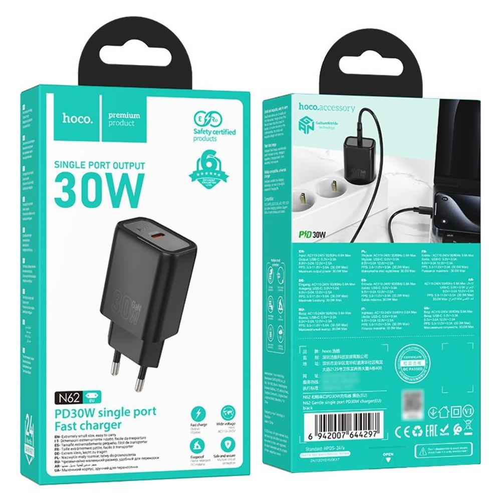 Особливості зарядного пристрою Hoco N62 Type-C PD 30W black: