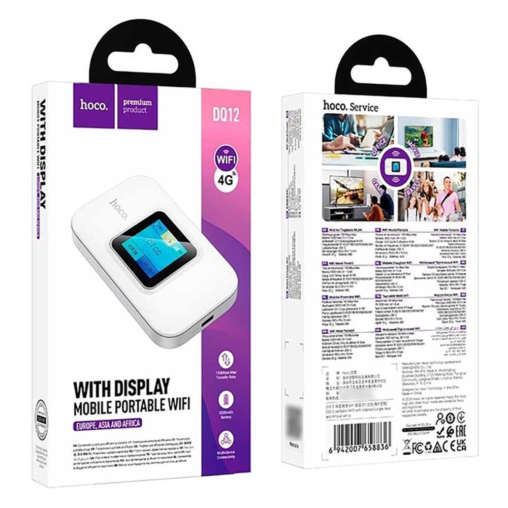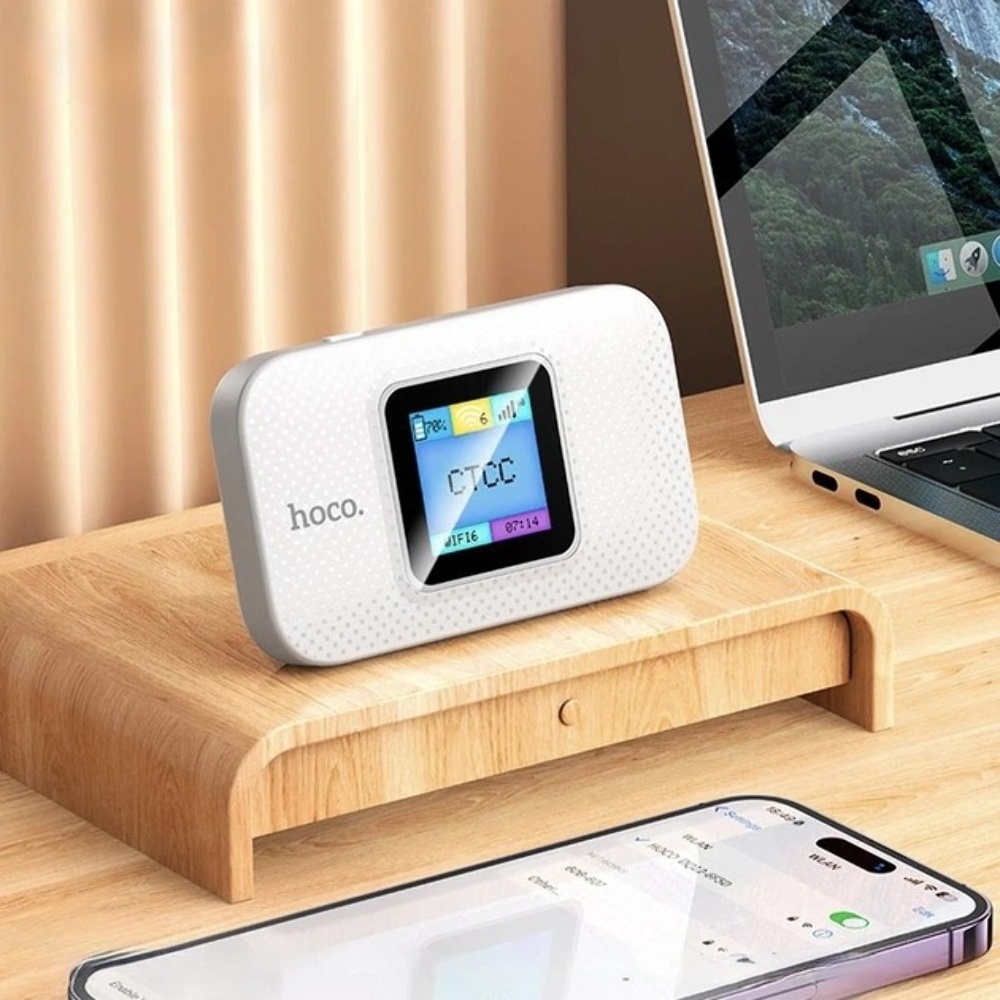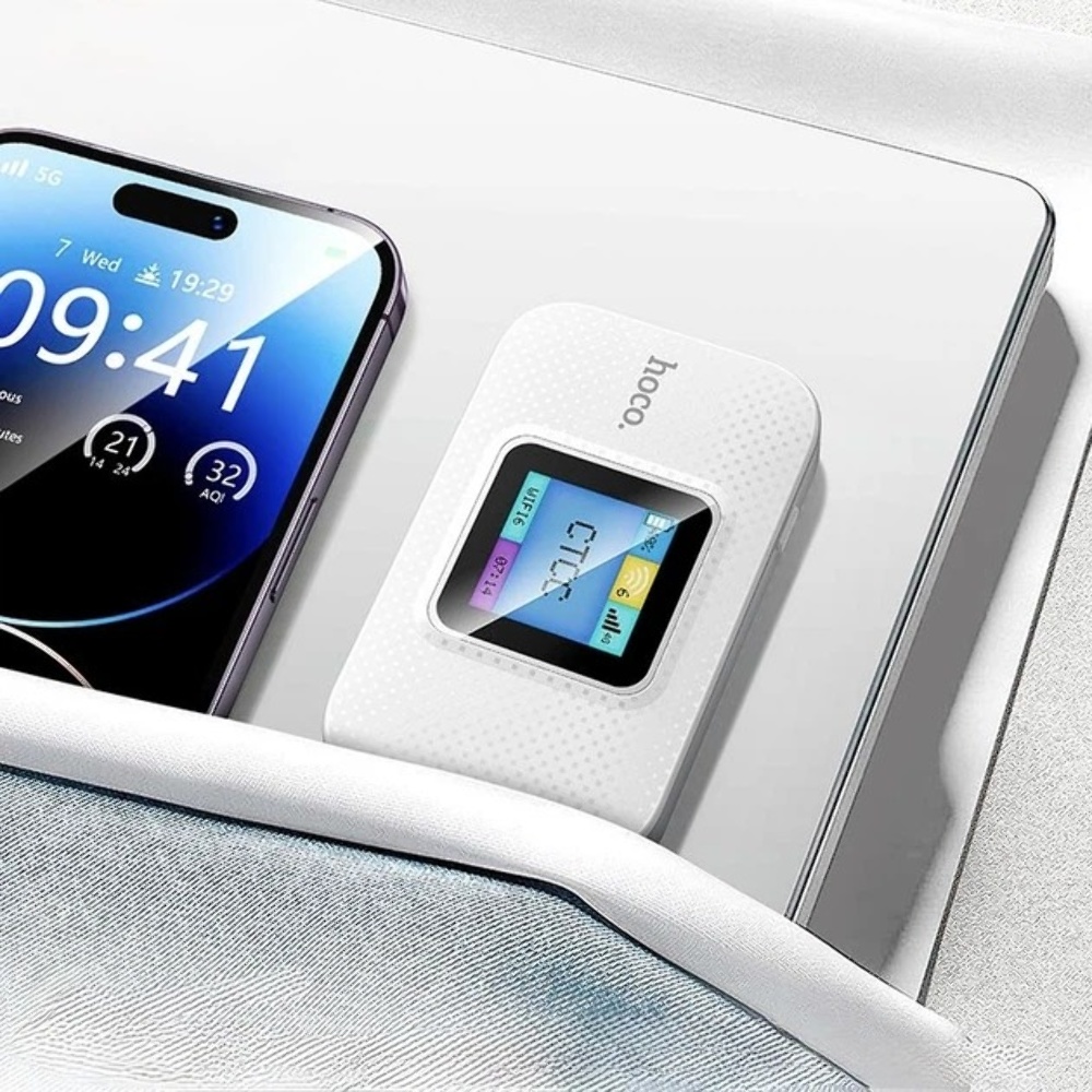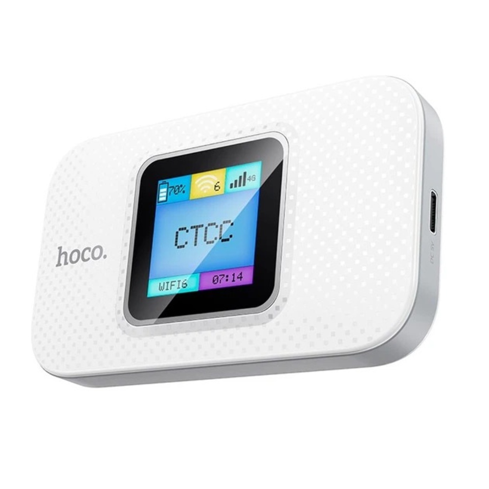 Портативный беспроводной Wi-Fi роутер Hoco DQ12 с дисплеем white