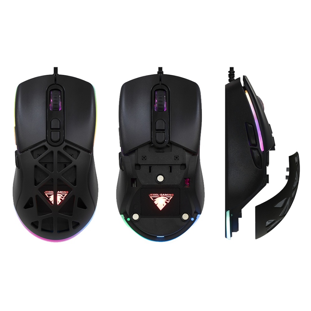Проводная мышь Jedel GM1390 игровая с RGB подсветкой и сменной магнитной панелью black