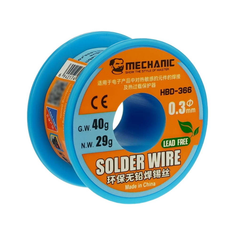 Припой Mechanic HBD-366 0,3 мм, 40 гр, Sn 99,3%, Bi 0,7%