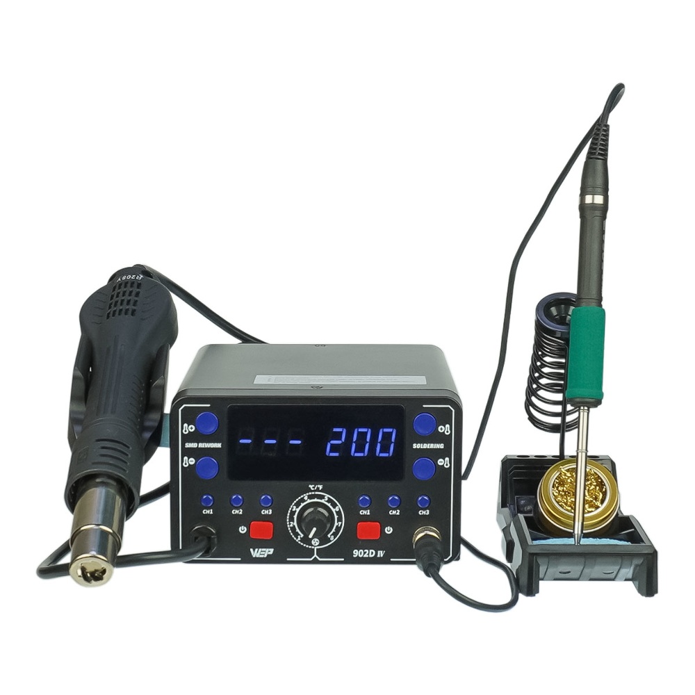 Паяльная станция прецизионная WEP 902D-IV (паяльник T12, 3 канала памяти, 200C - 480C, фен, 3 канала памяти, 100C - 480C, 775W)