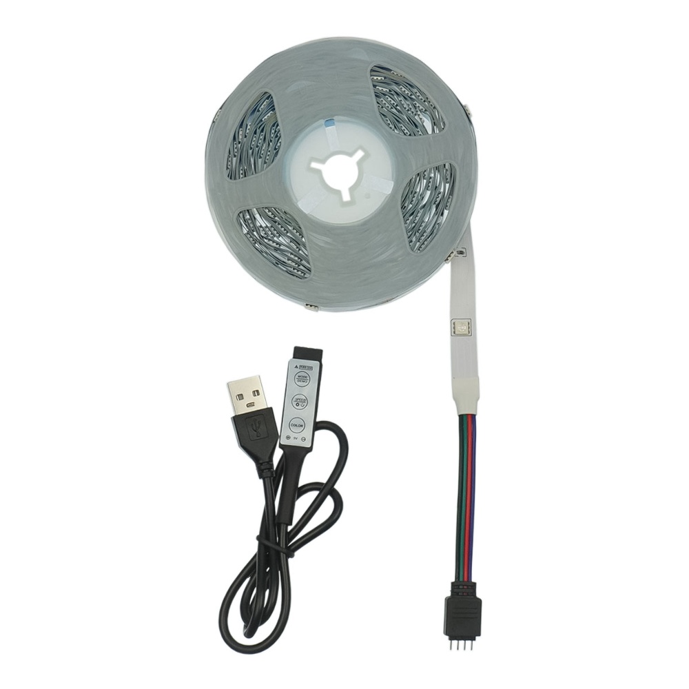 LED лента USB RGB 5V, IP 20, 10м, с копками управления, на самоклейке