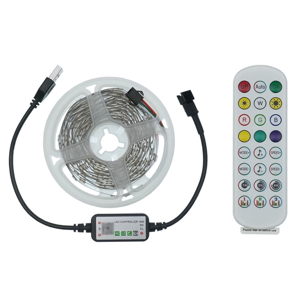 LED лента USB RGB 5V, IP 20, 5м, с Bluetooth и пультом, датчиком звука, на самоклейке