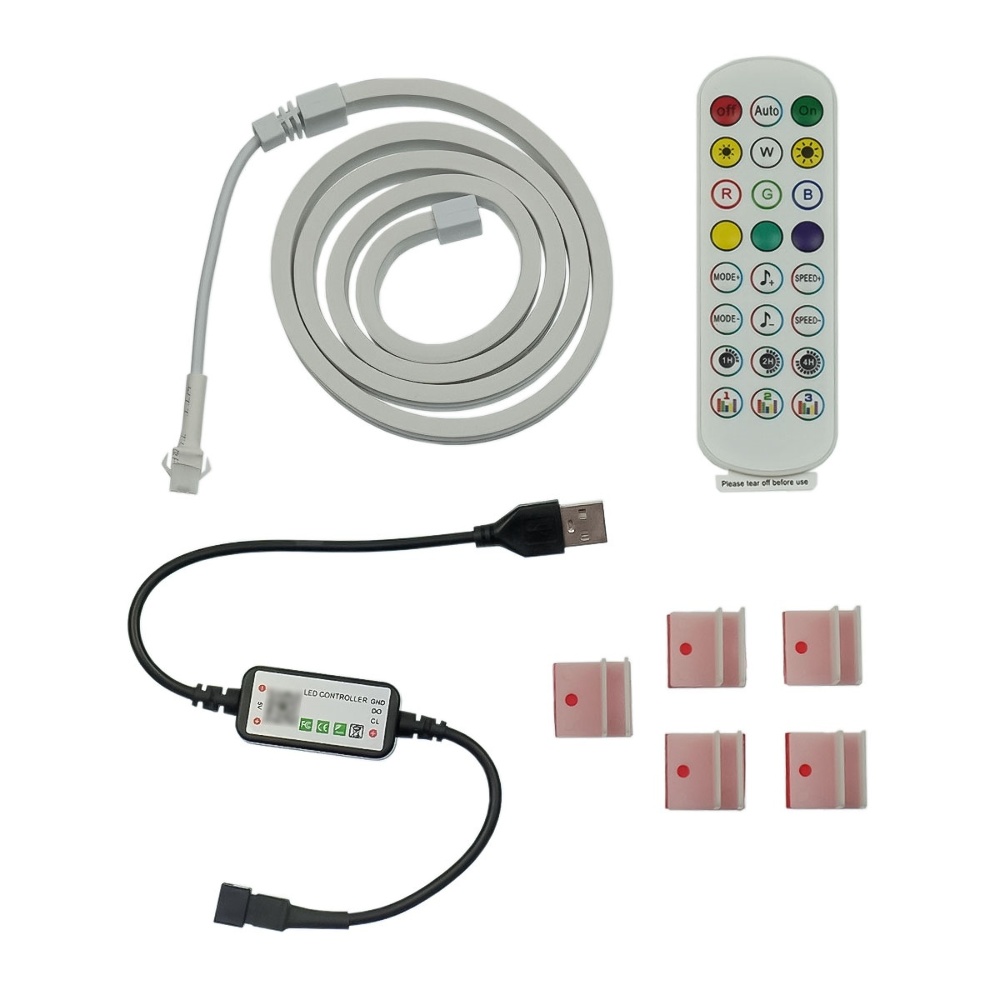 LED лента неоновая USB RGB 5V, IP 65, 1м, с Bluetooth и пультом, датчиком звука