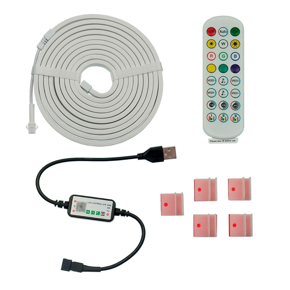 LED лента неоновая USB RGB 5V, IP 65, 3м, с Bluetooth и пультом, датчиком звука