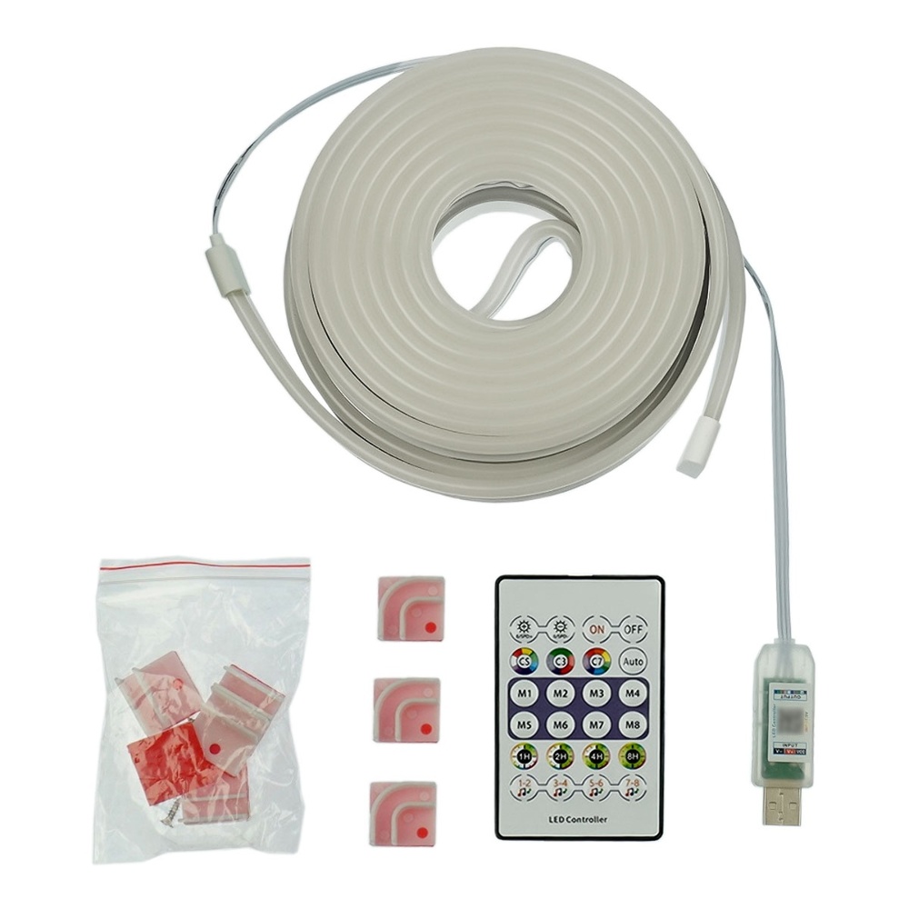 LED лента неоновая USB RGB 5V, IP 65, 5м, с Bluetooth и пультом (черный), датчиком звука