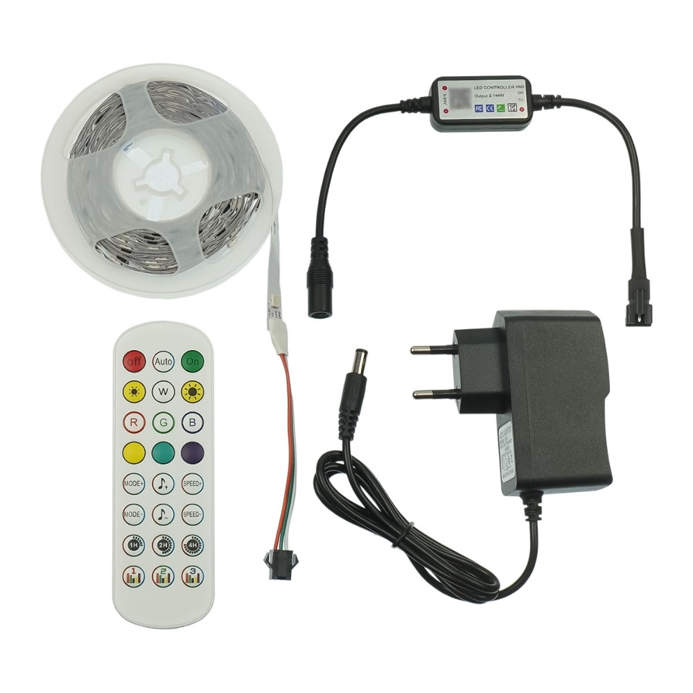 LED лента RGB DC 12V (с блоком питания), IP 20, 5 м, с Bluetooth и пультом, на самоклейке