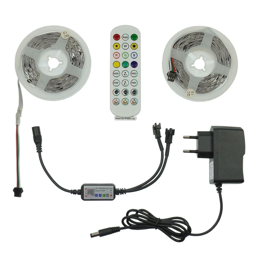 LED лента RGB DC 12V (с блоком питания), IP 20, 10 м, с Bluetooth и пультом, на самоклейке