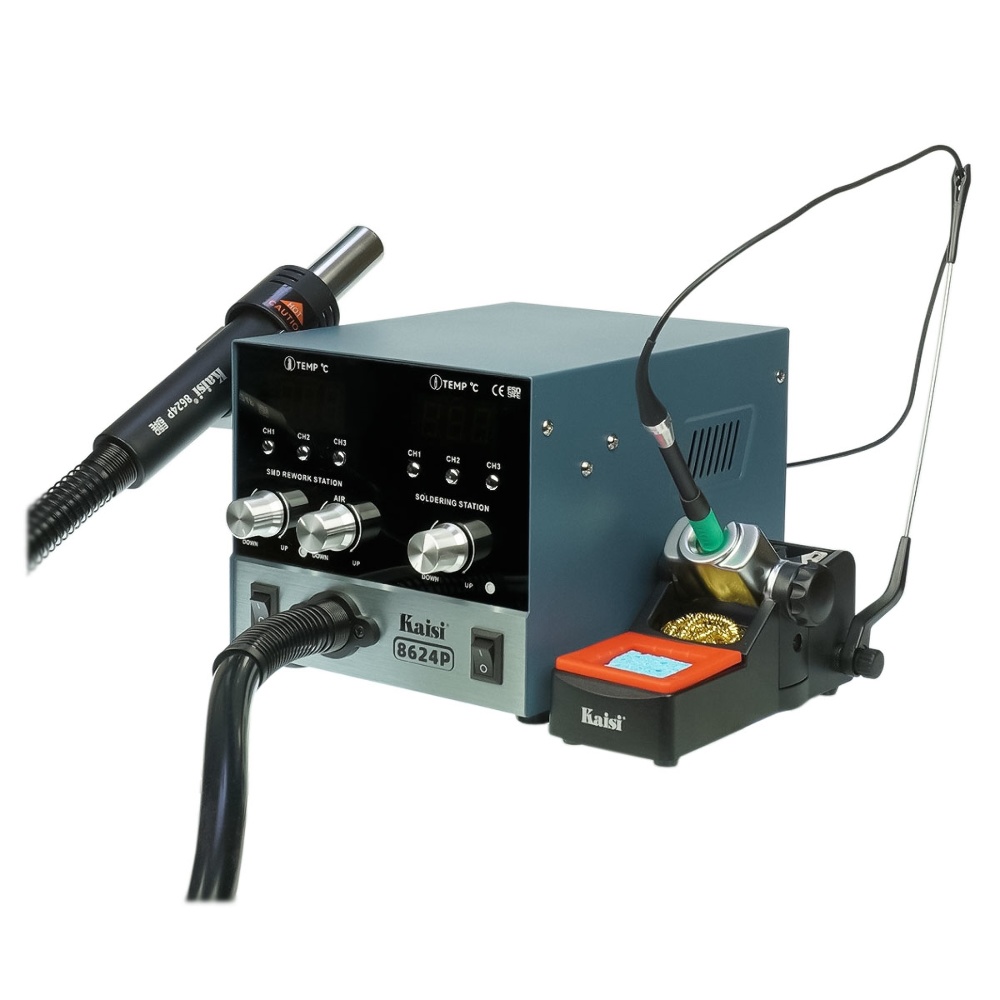 Паяльная станция прецизионная Kaisi 8624P-115, фен 100C - 450C, паяльник стандарта JBC 115 200C - 500C, 6 каналов памяти, 800W