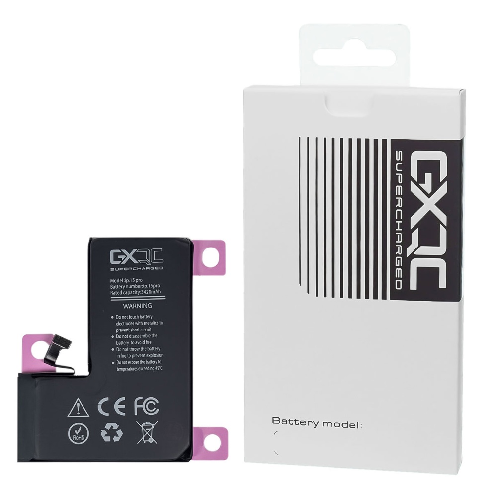 Акумулятор GXQC Supercharged для Apple iPhone 15 Pro IC HC, посилений (3420 mAh) Service Pack виготовлений на основі найякісніших компонентів і відповідає високим експлуатаційним показникам, порівнянним з оригінальними акумуляторами